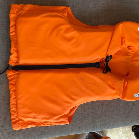 Redningsvest. Kjøpt for 6 år siden. Brukt noen få ganger til 1 barn. Det er kommet noen små sorte prikker på redningsvesten. Se bilde.