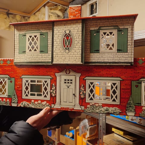 Pent brukt pippihus med møbler og figurer selges som det er for 1100 kr.