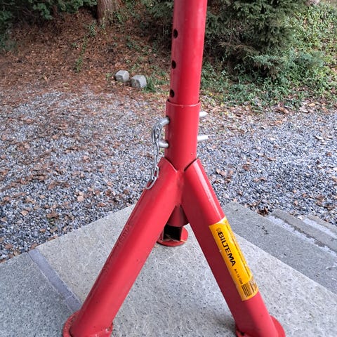 Støttebukker med justerbar høyde og sikkerhetssplint for ekstra sikkerhet.
