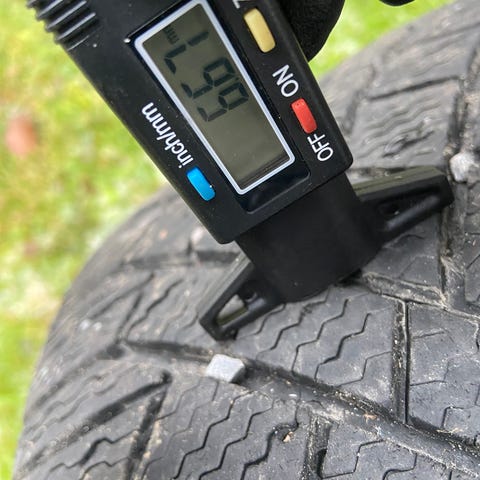 Jeg selger 2 stk vinterdekk piggfrie , mønster dybde , 6,5 mm. , 7, 0 mm , produsert år. 1620 , 2121 .