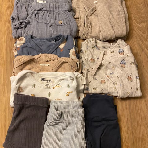 Klespakke med 3 body, 2 underdeler og 1 ulllue. Klærne er fra cubus, lil’atelier, lindex, hm og kappahl.