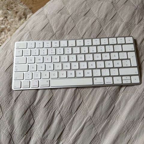 Flott trådløst tastatur med bluetooth fra apple, fin stand og fungerer som ny. Kan også brukes på pc, iphone eller android om man vil