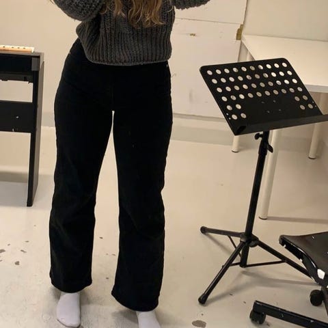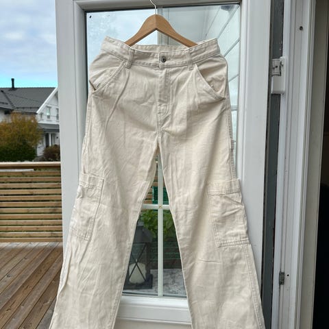 Kun tatt av lappen på buksene og prøvd de på. Ble en størrelse for liten.