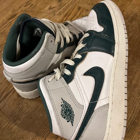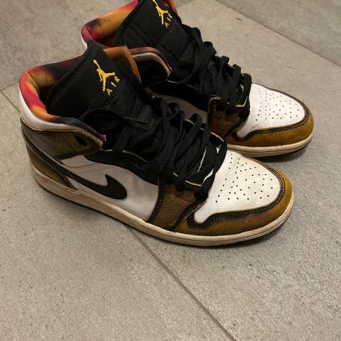 Pent brukte air Jordan’s 1 mid rød og svart i størrelse 37.