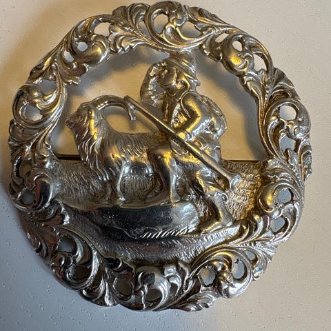 Brosje i sølv med motiv fra Njåls saga