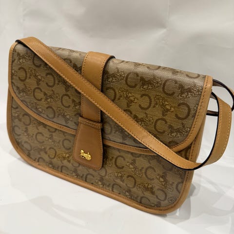 Vintage CELINE Black Leather Shoulder Bag soft black genuine leather with gold-tone hardware and Celine engraved clasp.