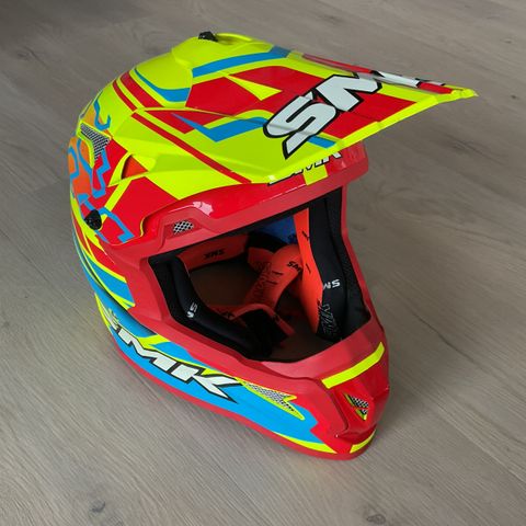 Allcop Crosshjelm i hvit farge. Hjelmen er designet for motorsport og har ventilasjonssystem, justerbar passform og slitesterkt materiale. Passer for både voksne og ungdom.