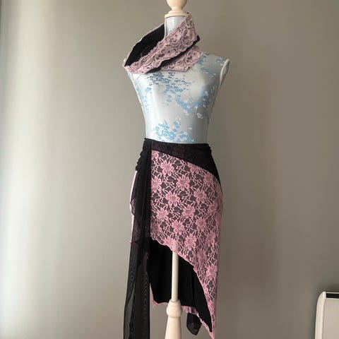 Skjørt med neon og splitter, brukt på raveparty tidlig 2000s