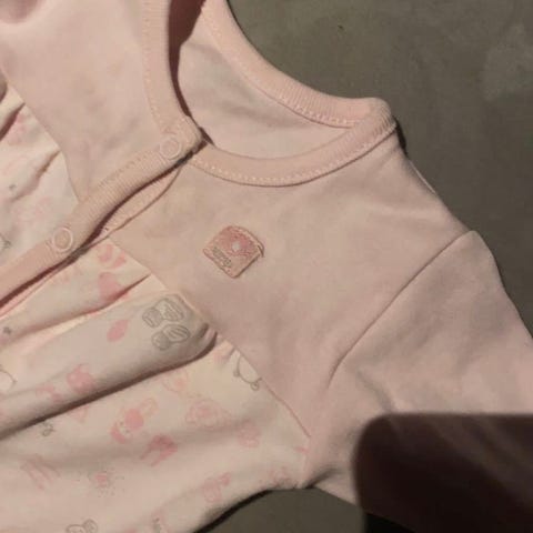 Begge deler i offwhite med rosa blomster – perfekt til nyfødt eller baby.