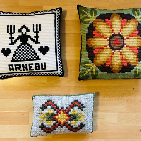 De er litt større enn de vanlige småputene av denne typen, og kan brukes til støtte, ikke bare pynt.