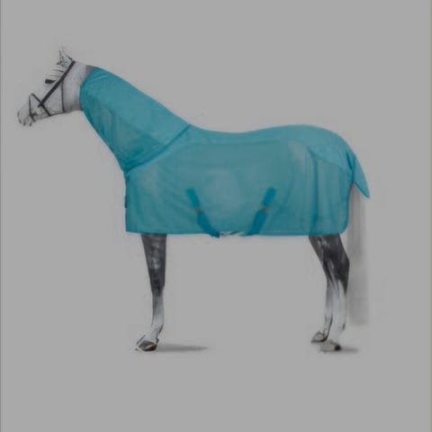 TRINITY Fly Rug hestedekken i beige farge. Designet for å beskytte hesten mot insekter under utendørs bruk. Laget av lette og pustende materialer for komfort og funksjonalitet.