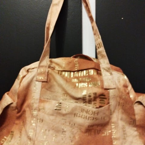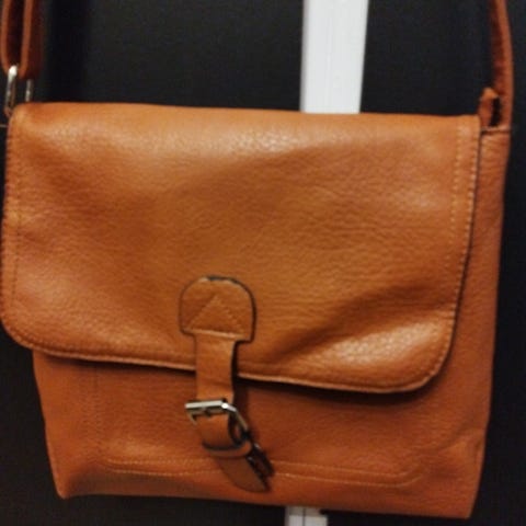 Den er 30x40 cm, med flere rom. Laget av tøy. Heter ISM