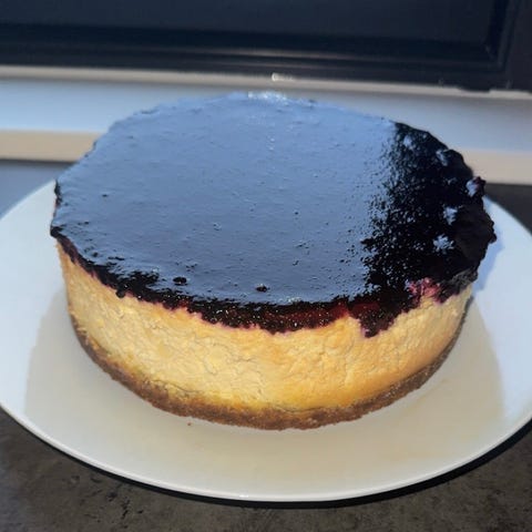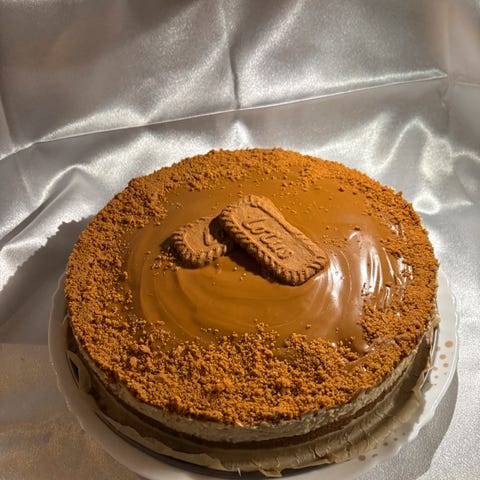 Ostekake på bestilling. Kjeksbunn, kremfyll og gelelokk. 26 cm i diameter.
