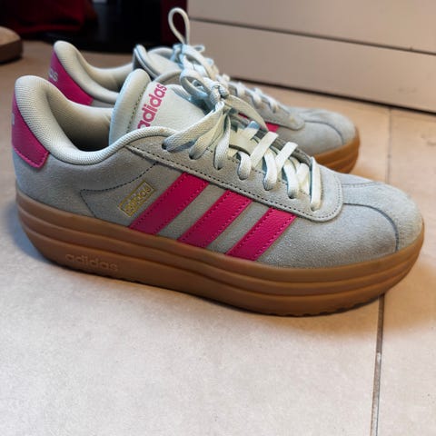 Adidas VL Court 3.0 sneakers i størrelse 38 for dame. Skoene er hvite med rosa detaljer og har en gummisåle. Materialet består av tekstil og syntetisk materiale. Egnet for hverdagsbruk og lett trening.