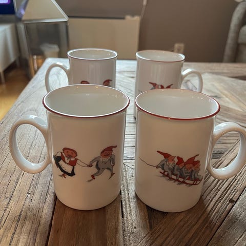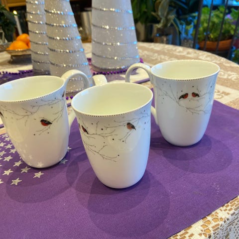 To sjokolade- / gløgg- / te-krus, 44 cl til juleserviset / vinterserviset Dompap fra PP. Ubrukt i originalemballasje. Selges samlet kr. 400,-
