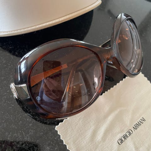 Klassiske og pent brukte briller av merket Chanel selges rimelig. Har krystaller på begge sidene, alle stein er på plass. Veldig høy kvalitet (sammenlignet med nå). Fargen er beige grå eller taupe. De ble kjøpt i Dubai i 2016 for litt over 4000 kr. Ordinærpris var 6800 kr. Følger med etui, Chanel ID kort, støvpose og eske. Ingen skraper eller synlige bruksmerker, glassene er i perfekt stand.