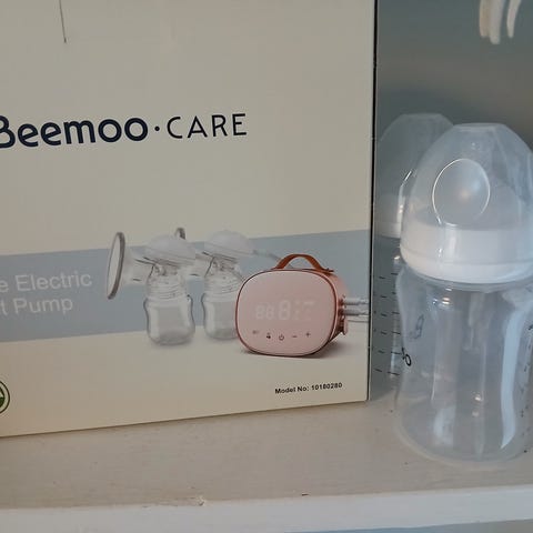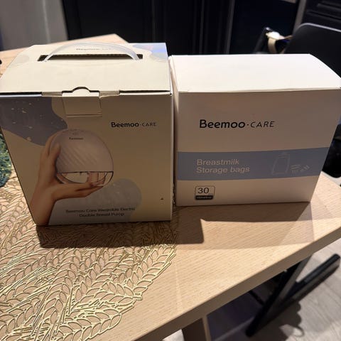 Beemoo CARE Elektrisk brystpumpe med LED-display, bærbar design og hvit farge. Utstyrt med dobbel pumpefunksjon for effektiv pumping. Passer for bruk av mødre som trenger en praktisk og bærbar løsning for pumping.