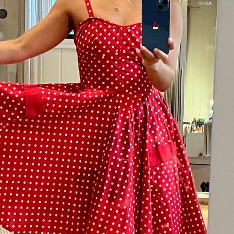 Chi chi London festkjole i rød farge, størrelse M. Kjøpt fra tise, men passet dessverre ikke. For meg var den trang over brystet. Så vil beskrive den mer som en størrelse 36. Brukt en gang av tilgere eier.