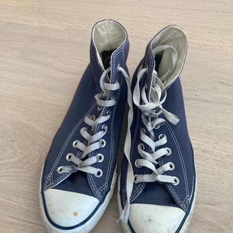 Converse Chuck Taylor All Star sneakers i grått stoff. Høy modell med hvite lisser og gummisåle. Skoene er i størrelse 38 og designet for damebruk.