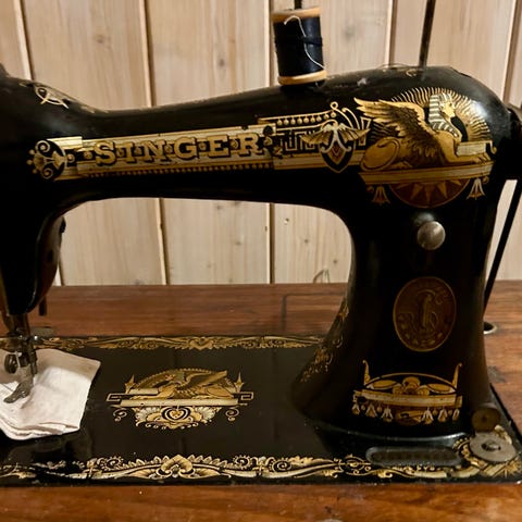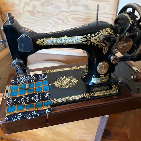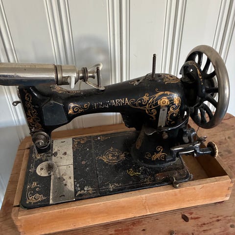 Nydelig gammel Phoenix symaskin med original treboks/flyttekasse.