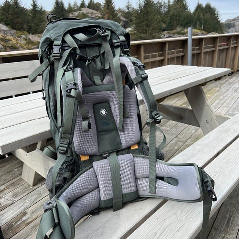 Hele bæresystemet kan tas av, slik at du kan feste lasten direkte til rammen for maksimal kapasitet. De to sidelommene rommer 10–12 liter hver, og kan tas av og brukes som en egen liten sekk. Tar du dem av, får du også plass til å feste annet utstyr på siden, som ski, fiskestang eller rifle.