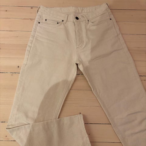 Denim jeans med stretch. Størrelse 60 mannen min bruker 58, de er store til han .Merkelapp viser feil.Rundt livet måler 118cm