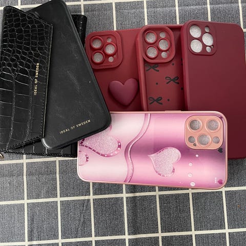 Selger to deksler til iPhone 12.pro Max. Ett med kortholder å et med perler gjennomsiktig. Kan sendes mot at kjøper bet frakt.