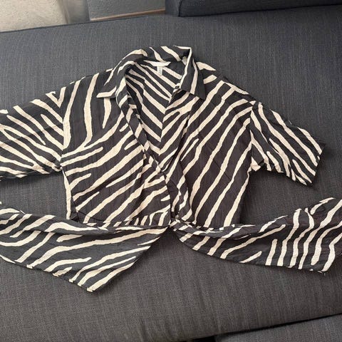 Det står str 36 på skjorta men det er nok en str 34 (som personen på bildene).