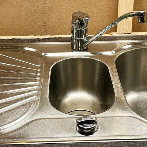 Rustfritt stål dobbel vask med kjøkkenarmatur