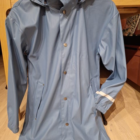 Wow Regnbue regnjakke i blå farge, størrelse 152, designet for jenter. Jakken har hette og lukkes med glidelås og trykknapper. Den er laget for å beskytte mot regn og har et vannavstøtende materiale. Jakken har lommer foran og en innvendig lomme med Regnbue design. Egnet for utendørs bruk i vått vær.