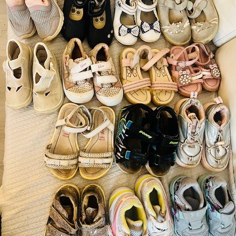 4 par barnesko fra forskjellige merker blant annet Geox og mino for jenter i størrelse 21 -24. Skoene kommer i ulike rosa nyanser og har borrelåslukking for enkel på- og avkledning. Materialet består av tekstil og syntetiske komponenter, egnet for daglig bruk. Selges alt for 200 kr.