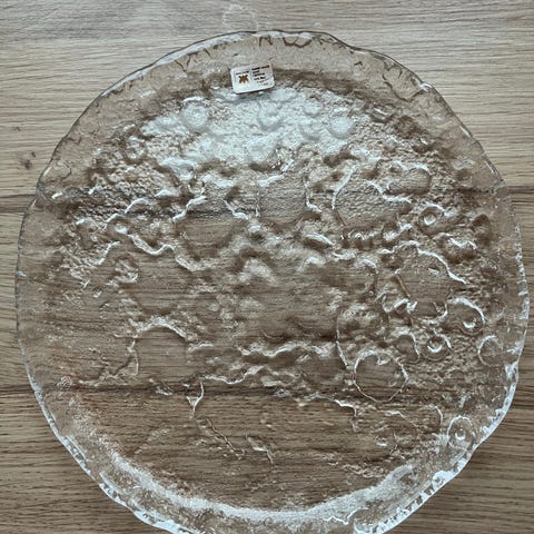 Søkeord: glassfat krystallglass glass krystall retro serveringsfat kakefat tallerken glasstallerken asjett kunstglass.