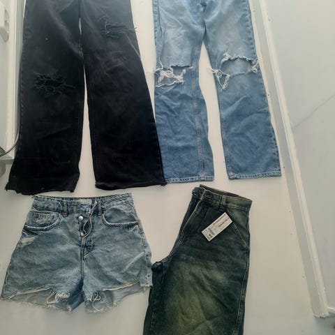 Selger 2 tøffe bukser med hull, selges samlet, sitter pent på, str 36