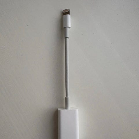 Originalt Apple adapter for iPhone/iPad å koble til eksterne USB-enheter som huber, Ethernet adaptere, lyd/MIDI-grensesnitt og kortlesere for CompactFlash, SD, microSD og lignende.