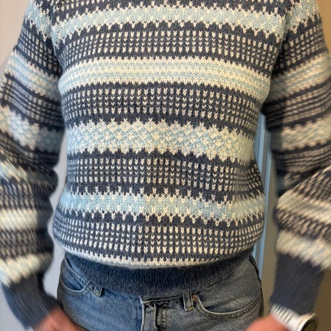 Denne er helt ny. Strikket et garn som heter DSA alpakka tweed classic. 50% alpakka, 30%merinoull og 20%donegal. Garnet er mykt og varmt.