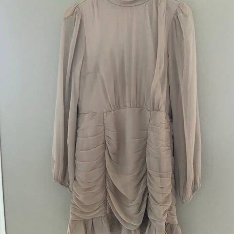 H&M festkjole i svart farge, størrelse 40Kjolen har et mønster med kontrasterende detaljer på ermene og nederst. Den er laget for kvinner og passer til formelle anledninger.
