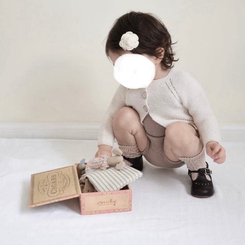 Deilig, myk jakke strikket i mohair garn. Størrelsen er ca 1 år. Mål: hel lengde 31 cm, under arm 19 cm overvidde 64 cm