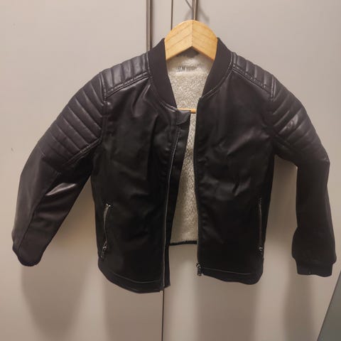 Ubrukt H&M Sort jakke i skinnimitasjon i størrelse 128.