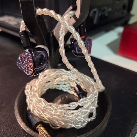 Purchased from Oslo Hi-Fi Centre in 2022 as ex-demo stock. Have thoroughly cleaned the provided ear tips, but never used them (others presumably have). I ended up getting a much better fit and bass response using aftermarket silicone tips. Your mileage may vary. The corner edge of the right monitor has a small wear mark (see pictures) from moving around inside the storage/travel case. Nice IEMs, but selling them because I no longer use them. New price ~12,990.00 NOK