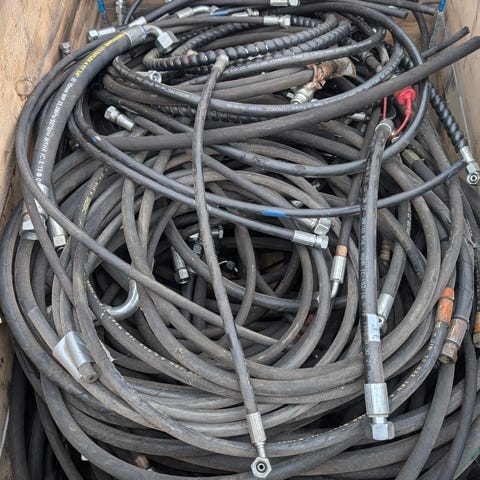 Sett med ulike rørdeler og ventiler i metall og plast, inkludert flenser, bend, koblinger og ventildeler. Delene er egnet for bruk i industrielle rørsystemer som småkraftverk og private vannverk. Det er ca 50/50 blanding av brukt og nye deler.