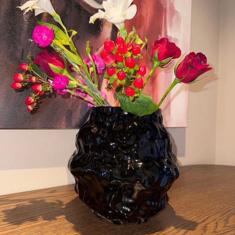 Delikat Iittala Issey Miyaki glassvase, høyde på 18 cm i klart glass, designet for dekorasjon og blomsterarrangementer.
