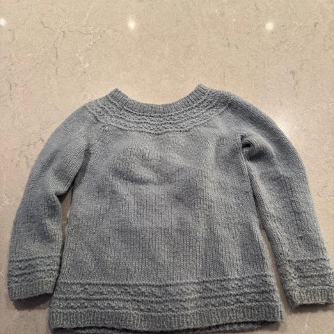 Håndstrikket ulljakke i marineblå farge, str. 110.