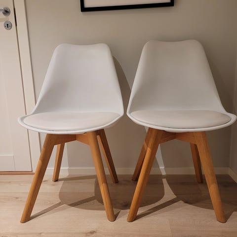 Pent brukte spisestoler fra Jysk. Normale bruksmerker på stolbeina, ellers i pen stand. Selges helst samlet. 6 stk