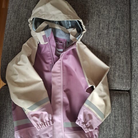 Foret regnjakke fra kids world. I god stand. Bittelitt slitasje på venstre arm, men ikke spesielt synlig (se bilde).