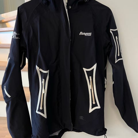 Bergans Softshell Jakke i størrelse S for kvinner. Jakken er svart og har hette, glidelås foran, og justerbare detaljer. Materialet er mykt og vindtett, egnet for utendørs bruk. Vanntette glidelåser. Meget pent brukt