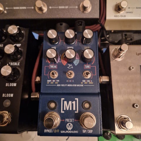 Jeg selger fordi jeg har kjøpt Ventilator II, som har stereo inn, og det har ikke denne. Den har mono inn og stereo ut. Låter fantastisk i stereo, men flott også i mono og wet-dry. Som bildene viser har den ingen kontroller utenpå, men den kan programmeres ganske enkelt via en prosedyre med bryterne. Pedalen er kun brukt i røykfritt hjemmestudio, og har aldri vært tråkket på. Selges med original eske og manual.