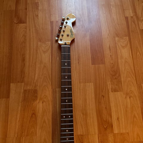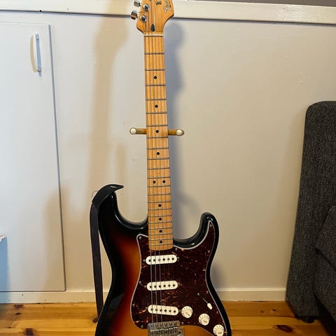 Stratocaster i god stand. Classic Vibe serien er jo godt kjent for sin kvalitet og denne er intet unntak. Den gode gamle typen før produksjonen ble flyttet fra Kina til indonesia. Nydelig strat-lyd fra Alnico 3 pickupene og høye bånd (tall, narrow) gjør at den rett og slett er morsom å spille på. Satt opp med 10-46 strenger og polerte bånd. Den har noen små riper og merker, har tatt bilde av de verste. Litt rust på output jack. God gitar for hvem som helst egentlig, begynner som viderekommen. Alt fungerer som det skal.