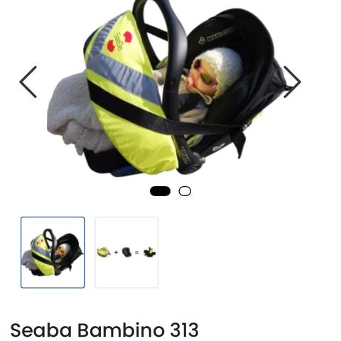Redningsvest fra SeaBa som festes på bilstol (Maxi-Cosi) som følger med