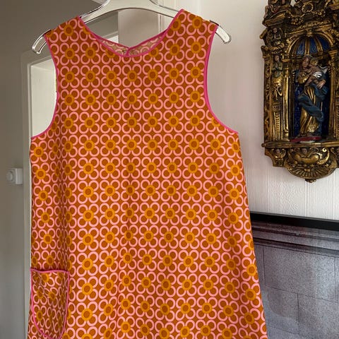 Morsom og fargerik topp - tunika i myk bomull. Dette var egentlig en kjole som jeg sydde opp til en tunika. Fin over bukser med en ensfarget langermet topp under,