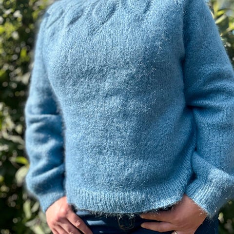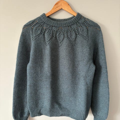 Jeg selger den for mindre enn garnet koster. og håper den kan finne et godt hjem:-)